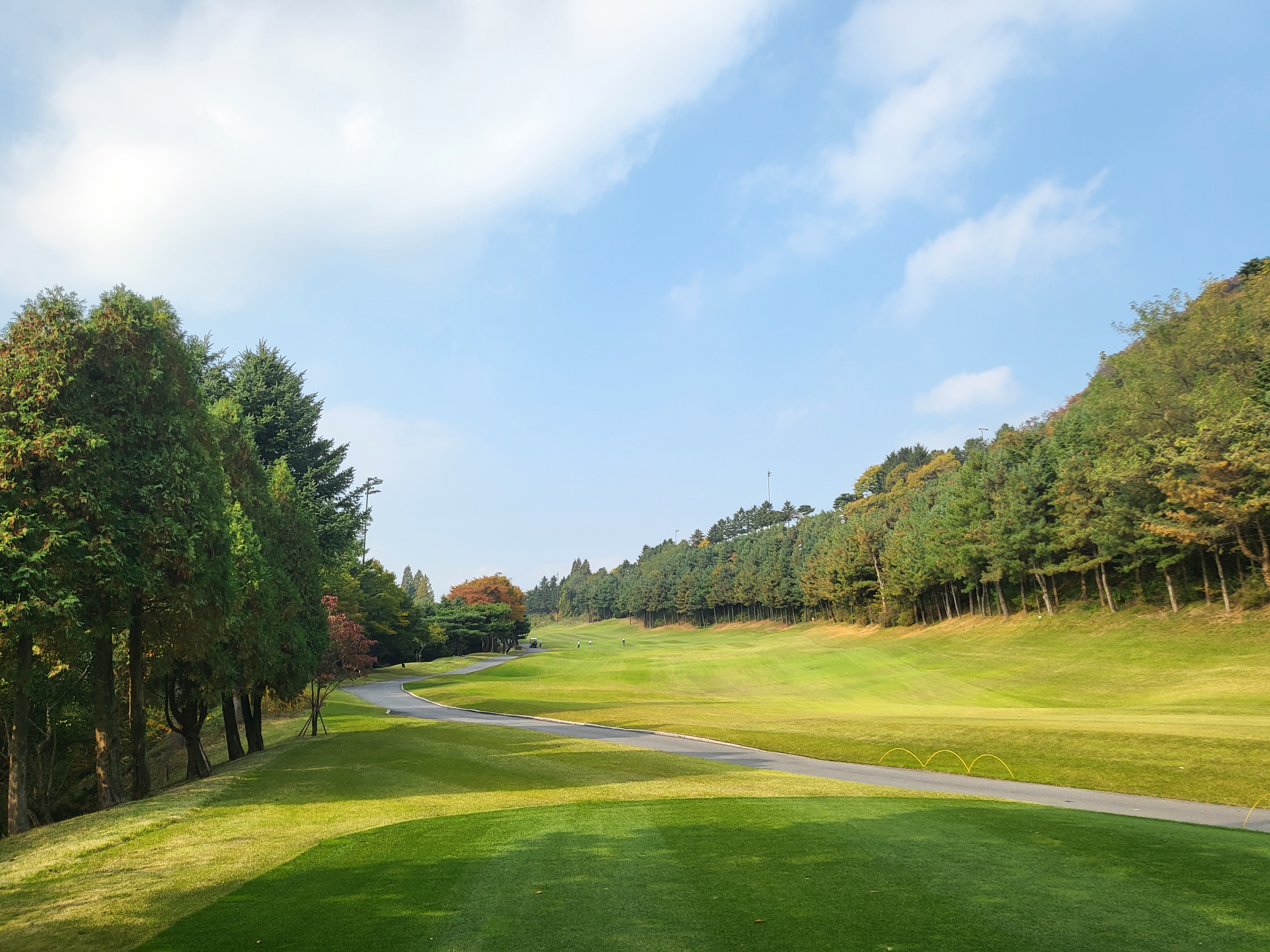난이도는 5점중 3.5점 정도 될것같습니다. 만만한느낌은 또 아니에요 페어웨이가 넓긴하나 평평한 평지가 그다지 많지가않아서 초보자들에게는 좀더 빡셀것같네요..오르막 홀들이 꽤나 있어서 체력적으로도 수월하기만하진않았습니다.